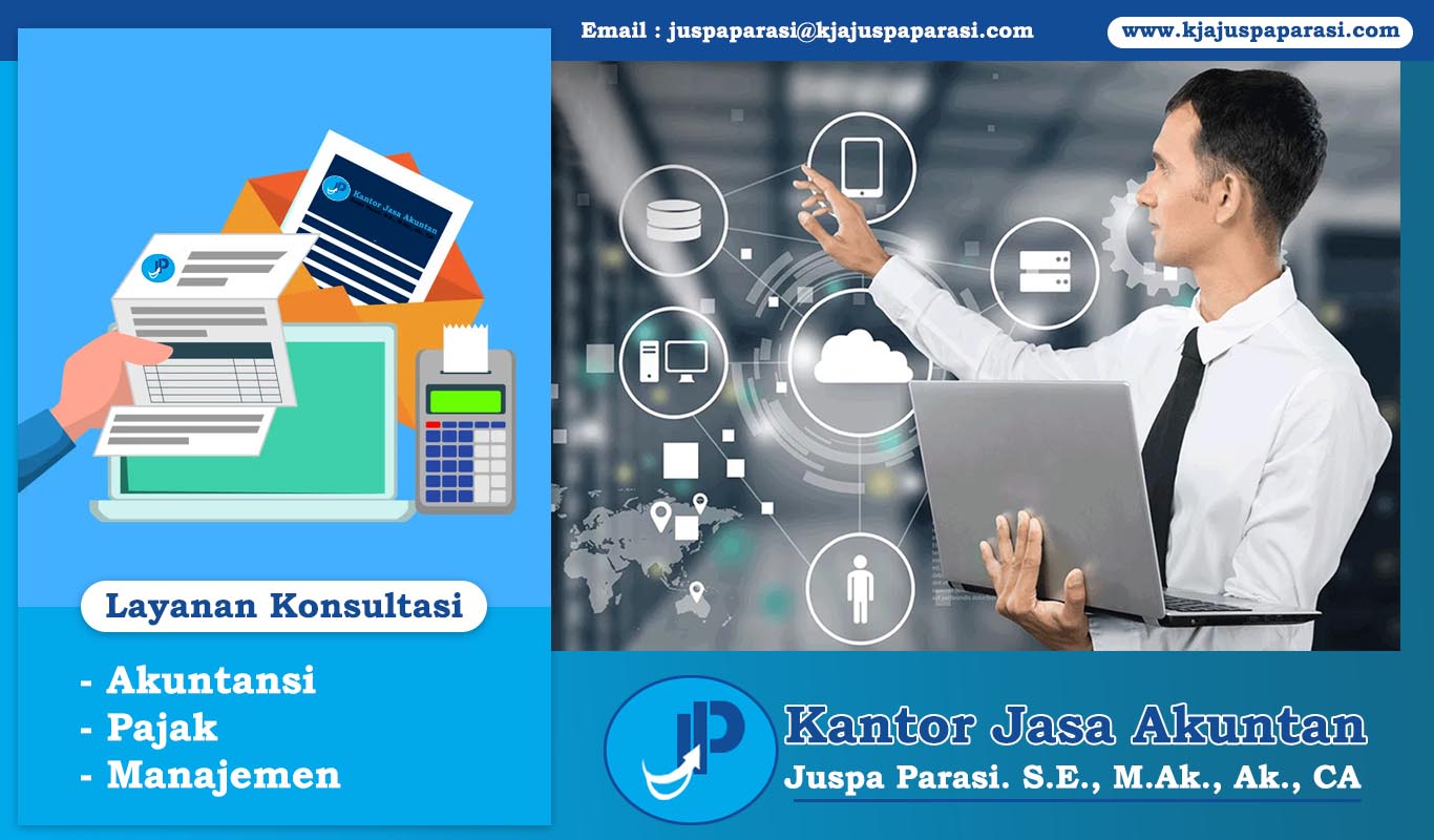 Kantor Jasa Akuntan Juspa Parasi S.E ., M.Ak., Ak., CA merupakan kantor jasa akuntan yang memiliki izin resmi dari Kementerian Keuangan Republik Indonesia yaitu Izin Akuntan Berpraktik : Keputusan Menteri Keuangan Republik Indonesia Nomor 316/KM.1PPPK/2018 dan Izin Usaha Kantor Jasa Akuntan : Keputusan Menteri Keuangan Republik Indonesia Nomor 2/KM.1PPPK/2020. Kami menyediakan jasa di bidang Akuntansi, perpajakan dan juga jasa management lainnya yang Terpercaya, Independen, Akuntabel dan Profesional dibina dan diawasi langsung oleh Pusat Pembinaan Profesi Keuangan Republik Indonesia dan Asosiasi Profesi Akuntan ( Ikatan Akuntan Indonesia ). Kantor Jasa Akuntan Juspa Parasi. S.E., M.Ak., Ak., CA berkomitmen memberikan pelayanan terbaik kepada anda dengan menerapkan Standar AKuntansi Keuangan dan Peraturan Perpajakan.